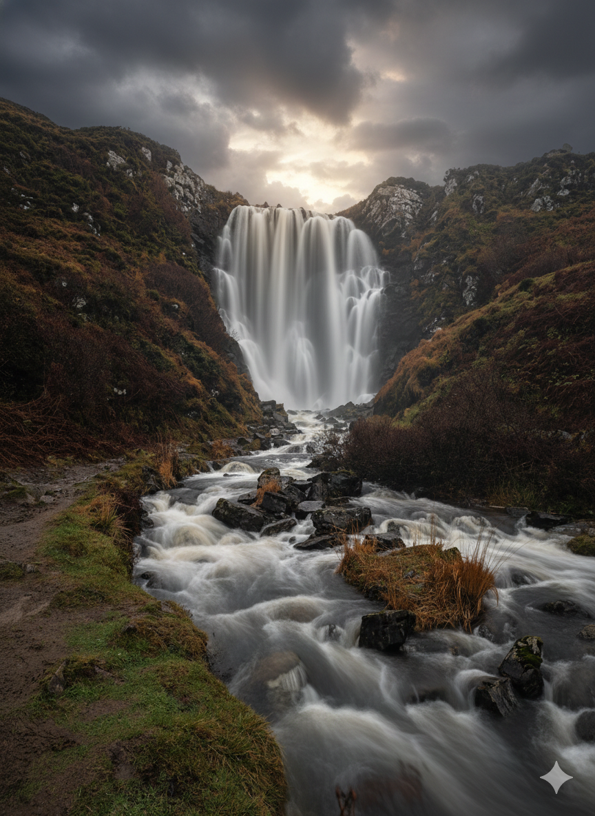 Down the inside coast for the second highest waterfall in Scotland.
